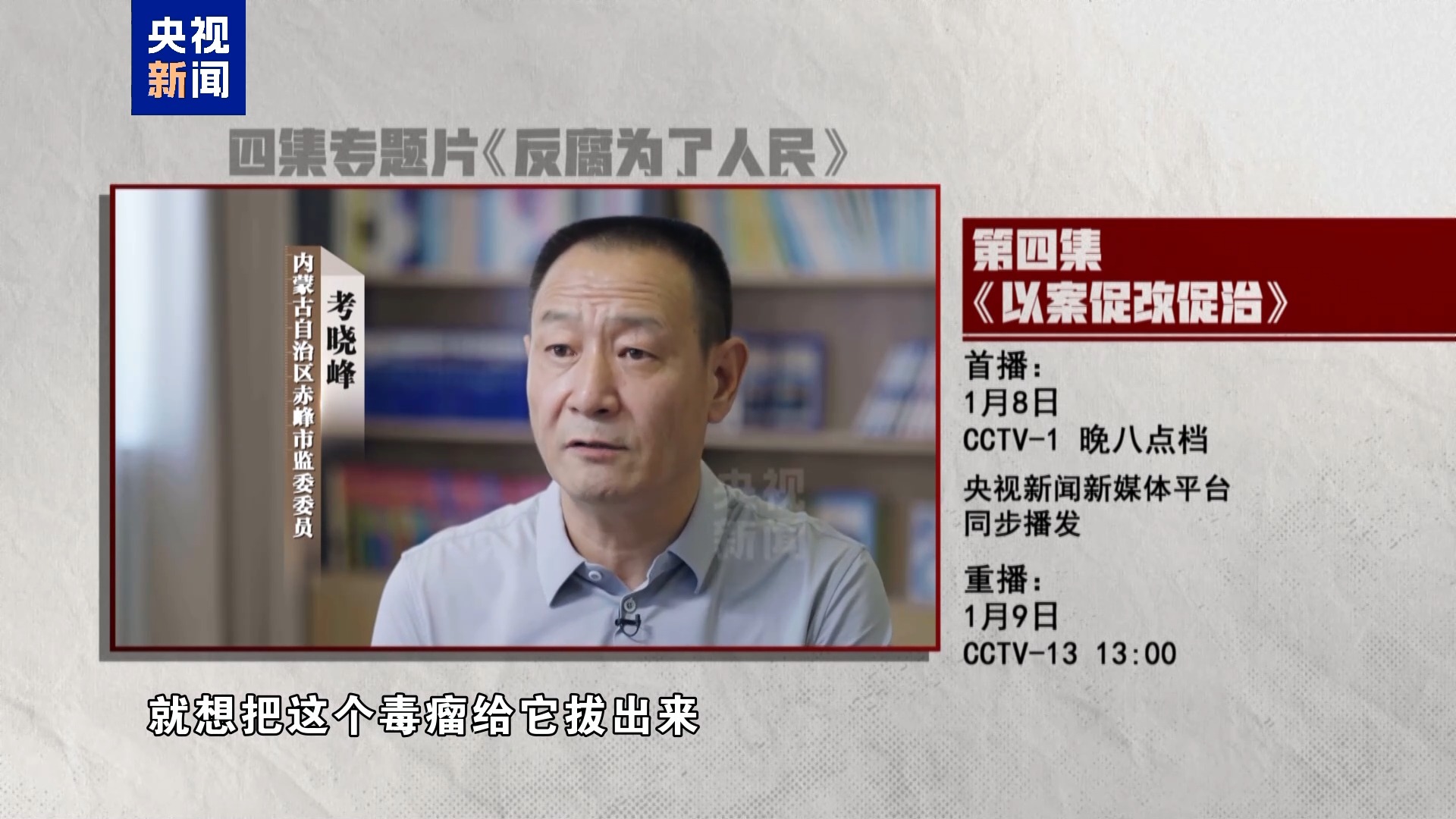 The fourth episode of the TV special film "Anti-Corruption for the People" "Using Cases to Promote Reform and Governance", tells the story of discipline inspection and supervision agencies deepening the exploration of effective carriers for the integration of the "three non-corruption", strengthening "dare" by rectifying the work style, enhancing discipline and anti-corruption, promoting "unable" Dengan meningkatkan sistem dan mekanisme, dan merangsang "tidak menginginkan" dengan ideologi dan pendidikan politik. Itu membuat upaya komprehensif dari investigasi kasus hingga tata kelola sistematis, memperdalam penggunaan kasus untuk mempromosikan reformasi dan tata kelola berdasarkan kasus, dan fokus pada pemberantasan tanah dan kondisi untuk pemuliaan korupsi. CCTV Comprehensive Channel akan disiarkan pukul 8 malam pada 8 Januari, dan platform media baru CCTV News akan disiarkan secara bersamaan. Mohon tetap disini.