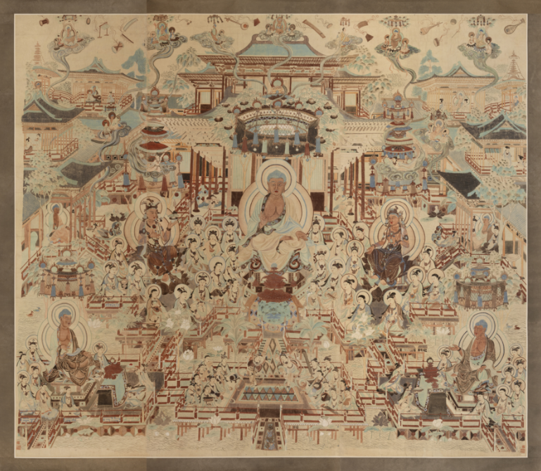 "Merenungkan Sutra Amitabha" adalah karya yang lebih besar yang disalin oleh Tn. Chang Shana ketika dia berusia 15 tahun. Gua 172 dari Dinasti Tang yang makmur adalah sebuah gua yang ditutupi dengan gua Douding, dan dinding utara dan selatan ruang gua dicat untuk melihat Sutra Amitabha. Salinan yang ditampilkan kali ini berasal dari dinding selatan gua ini. Saat menyalin, warna kulit dari karakter yang telah berubah menjadi gelap telah dikembalikan ke warna aslinya. Gambar -gambar ditutupi dengan paviliun dan paviliun, dengan banyak karakter, dan suasananya ceria dan hangat, sepenuhnya menunjukkan kesungguhan Buddha, kelembutan Bodhisattva, kegembiraan musik, dan keindahan luar biasa dari tanah murni. Karya ini tidak hanya artistik, tetapi juga memiliki nilai arkeologis dan penelitian yang tinggi, dan dapat dipelajari oleh dunia sebelum dan sesudah pelapukan mural. Chang Shana berharap untuk mengingatkan lebih banyak orang untuk memahami dan memahami seni estetika Dunhuang melalui presentasi karya -karyanya. Class = "photo_img_20190808">