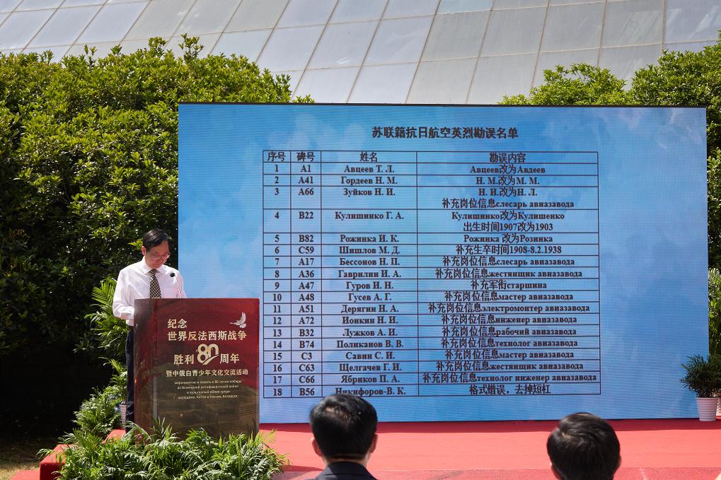 Tahun ini menandai peringatan ke-80 kemenangan Perang Perlawanan Rakyat Tiongkok terhadap agresi Jepang dan Perang Anti-Fasis Dunia. Opini publik percaya bahwa pembaruan informasi tentang pahlawan dari industri penerbangan anti-Jepang Soviet adalah untuk mengingat para pahlawan dan mengingat sejarah.