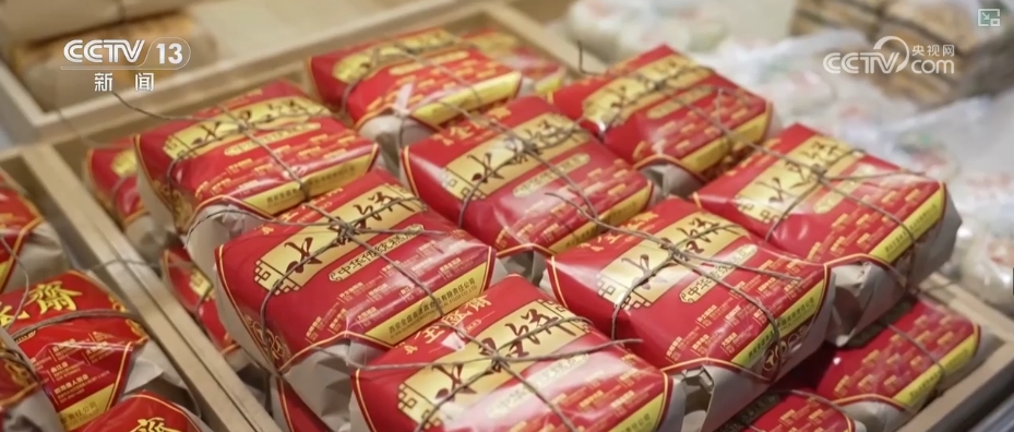 Selama periode ini, makanan warisan budaya tidak berwujud di pasar barang tahun baru di Xi'an, Shaanxi telah booming. There were long queues in front of traditional food stores such as braised beef and mutton, crystal cakes, etc.