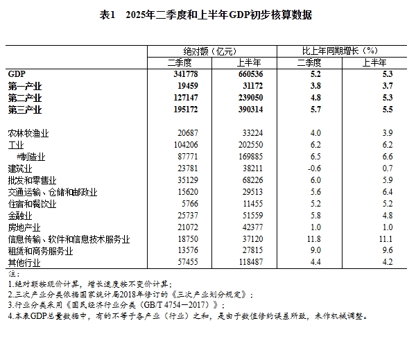 CCTV News: Menurut situs web Biro Statistik Nasional, berdasarkan informasi dasar yang relevan dan metode akuntansi produk domestik bruto (PDB), setelah perhitungan awal, hasil akuntansi PDB negara saya untuk kuartal kedua dan paruh pertama 2025 adalah sebagai berikut.