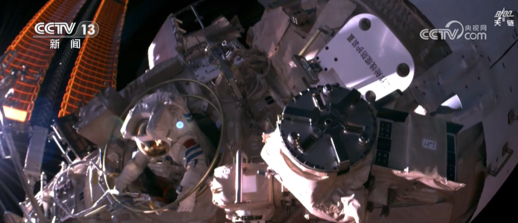 di luar-cabin. dari pipa kabin luar dan kabel kabin inti Tianhe. Misi ini terutama memasang perangkat pelindung kabin kabin luar dari kabin eksperimental Wentian.