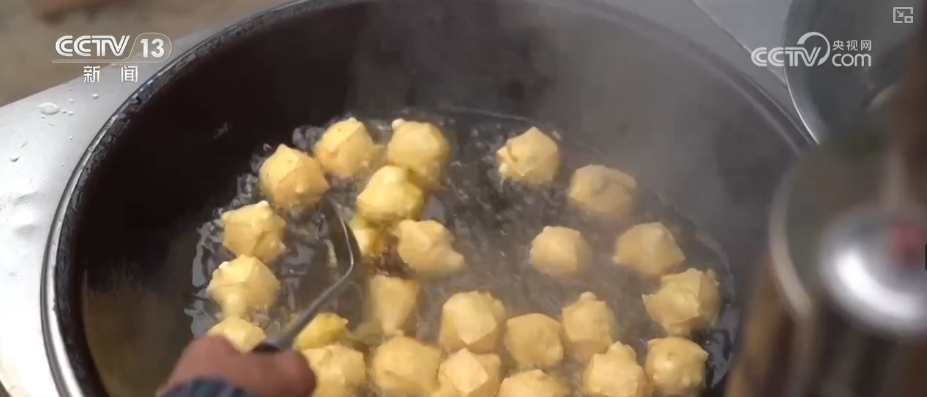 Di jalan Kuil Huoshen, Anju Kota Kuno, Pria, Wanita, Muda dan Muda Berkumpul Tua di awal pagi dan dimulai pada pagi hari dan dimulai pada pagi hari dan mulai pagi. Resident Xiao Huaming Frys Daging yang dimasak dengan panci minyak mendidih. Dia ingin berbagi hidangan ini dengan tetangganya.