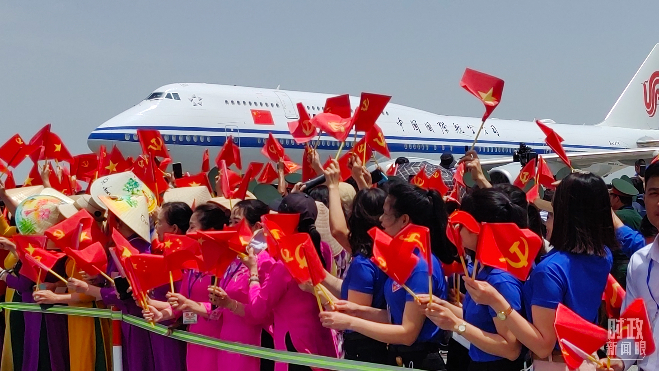 14日中午,习近平总书记乘坐的专机抵达越南河内内排国际机场。