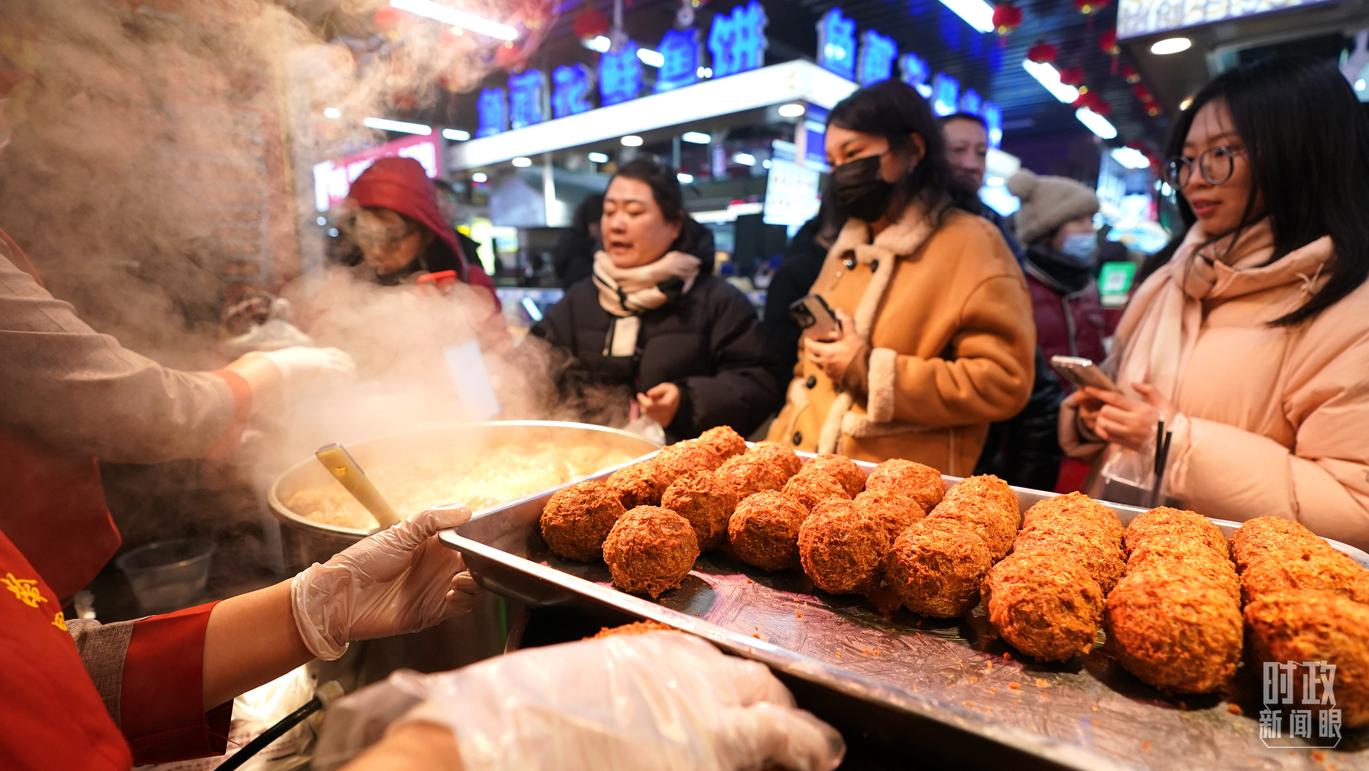 春节日益临近,大东副食品商场里,叫卖声、询价声、滋滋冒油声、嘭嘭剁馅声……一派热闹非凡。在东北的数九寒天里,当沸腾的烟火气遇到节日的喜庆氛围,寒冬腊月里更显热气腾腾。