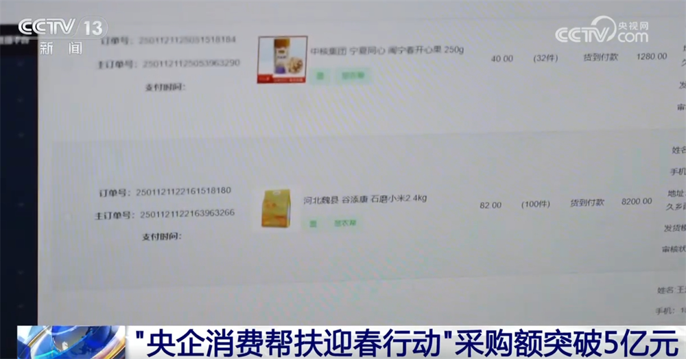 Новости CCTV: репортер, изученный из государственной комиссии по надзору за активами и администрированием государственного совета 14 января, что недавно, в Центральном предприятии по привлечению внимания платформы электронной коммерции «Центральное предприятие по потреблению предприятия». Воспользуйтесь возможностями потребления весеннего фестиваля 2025 года и помогают продвигать сельское хозяйство и обогащение предприятий. Мероприятие будет продолжаться до 18 января. Согласно последней статистике, объем покупок деятельности превысил 500 миллионов юаней.