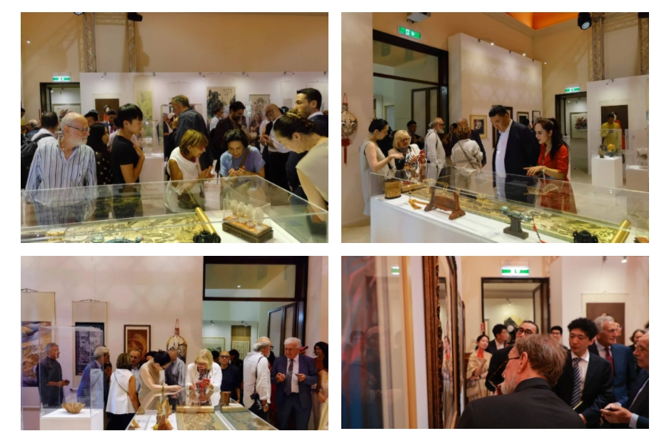 This special exhibition carefully presents the essence of Chinese traditional Chinese skills such as calligraphy and painting, cloisonné, bamboo carving, embroidery, cloud brocade, jade carving, paper cutting, etc., and also displays many ancient and precious intangible cultural heritage works from the Italian Museum of Human Civilization, as well as precious cultural relics and artworks such as Italian traditional clothing, pottery, и бронза. Этот диалог цивилизации, охватывающий тысячи лет, показывает давние результаты культурного наследия и взаимного обучения двух стран, и получил высокую похвалу от местных жителей.