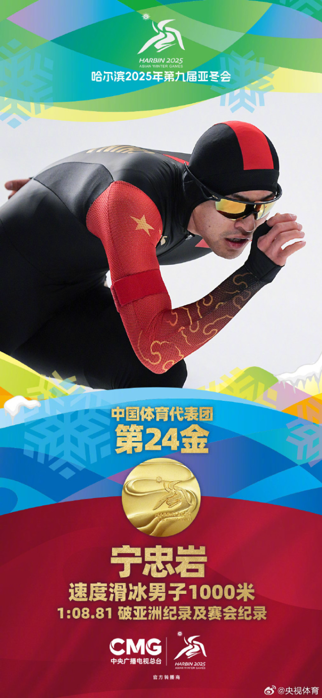 No. 24 Altın! Ning Zhongyan, Asya Kış Oyunları'nda erkeklerin hız pateni için 1000m altın madalya kazandı