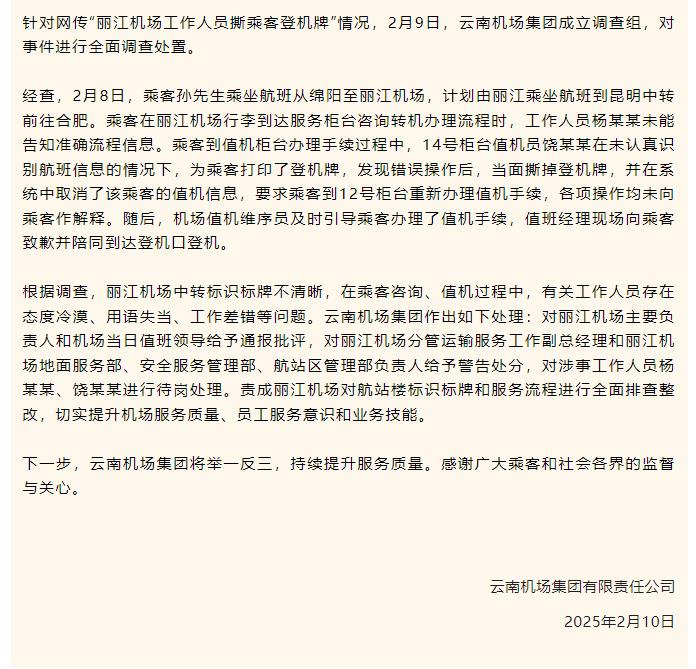 Lijiang Havalimanı'nın "Kontrol-Kontrol-Giriş Geçişi" Soruşturma Sonuçları: İlgili iki kişi görevde ve birden fazla departmanın başkanları uyarılıyor