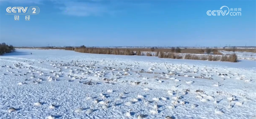 Xinjiang Manas Wintering Swans rekoru yüksek sayıya vurdu ve çevik figür kış sulak alanlarına canlılık katıyor