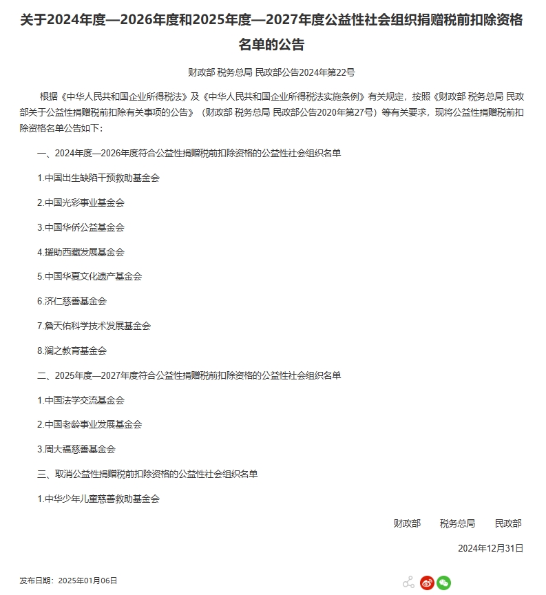 CCTV Haberleri: Maliye Bakanlığı, Devlet Vergilendirme İdaresi ve Sivil İşler Bakanlığı yakın zamanda kamu refahı sosyal kuruluşları için vergi öncesi kesinti niteliklerinin bir listesini yayınladı.