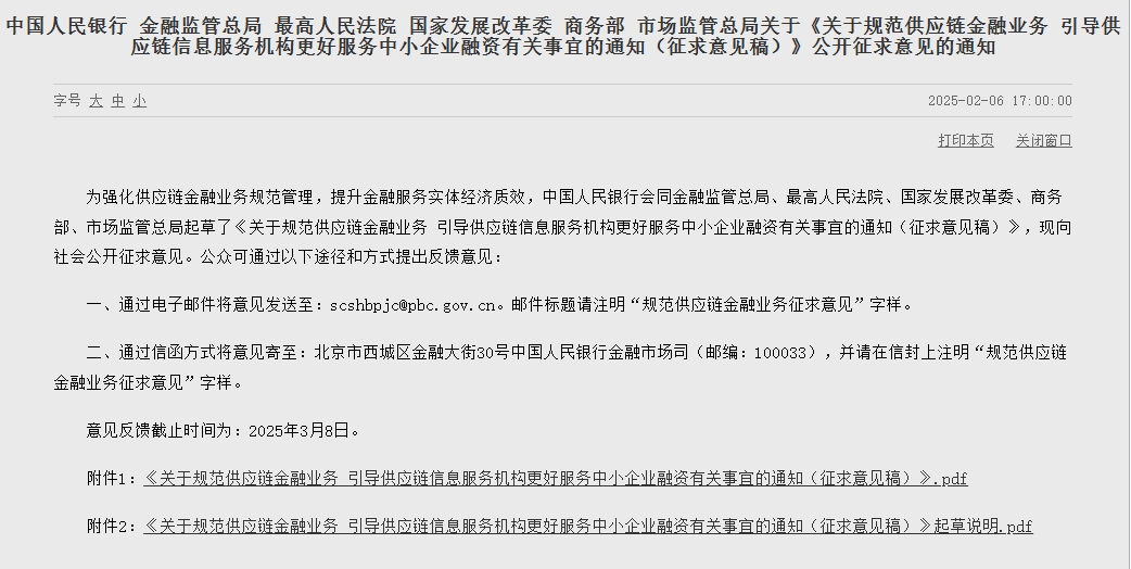 Tedarik zinciri finansmanı işini standartlaştırın ve altı departmandan kamuya açık fikirleri isteyin