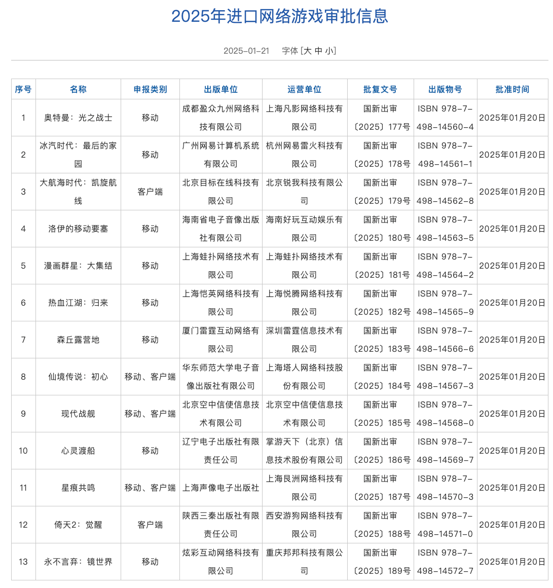 Basın ve Yayın Devlet İdaresi, 2025'te ithal çevrimiçi oyunlar için onay bilgilerini yayınladı ve 13 ithal oyun onaylandı