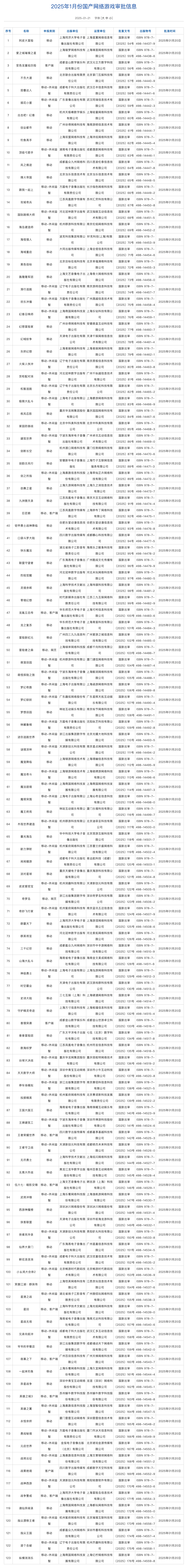 Basın ve Yayın Devlet Yönetimi, Ocak 2025'te Yurtiçi Çevrimiçi Oyunlar için onay bilgilerini yayınladı ve toplam 123 onaylandı