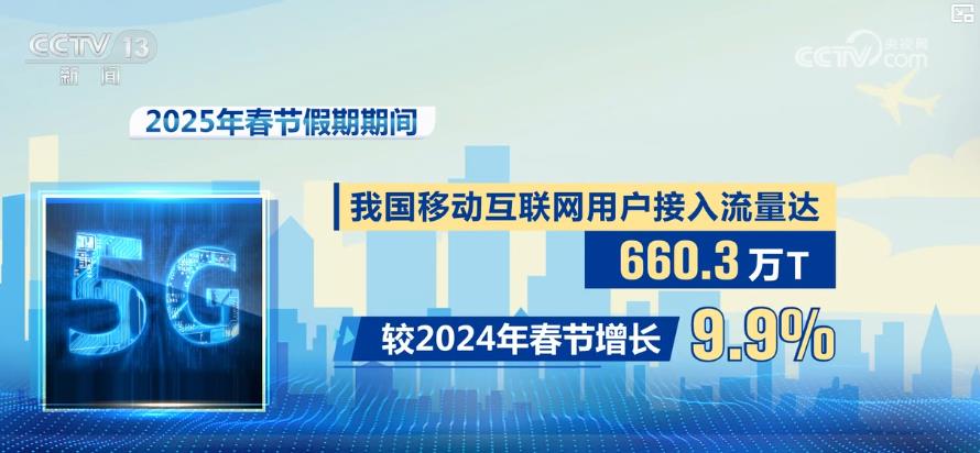 CCTV Haberleri: Sanayi ve Bilgi Teknolojileri Bakanlığı'ndan istatistikler, Bahar Festivali Tatili sırasında, ülkemin mobil veri trafiğinin 5G trafiğinin%60'tan fazlasını oluşturması ve uluslararası dolaşım işinin hızla arttığını gösteriyor.