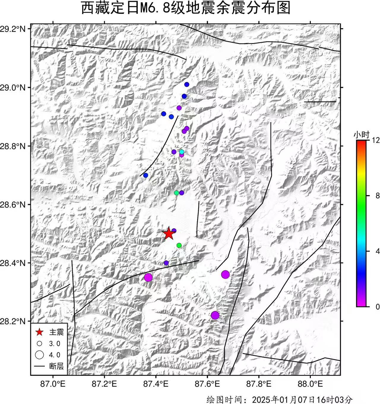 Dingri County'deki 6.8 büyüklüğünde depremden sonra, Shigatse, 3.0 ve üstü büyüklükte 19 büyüklükte bir.