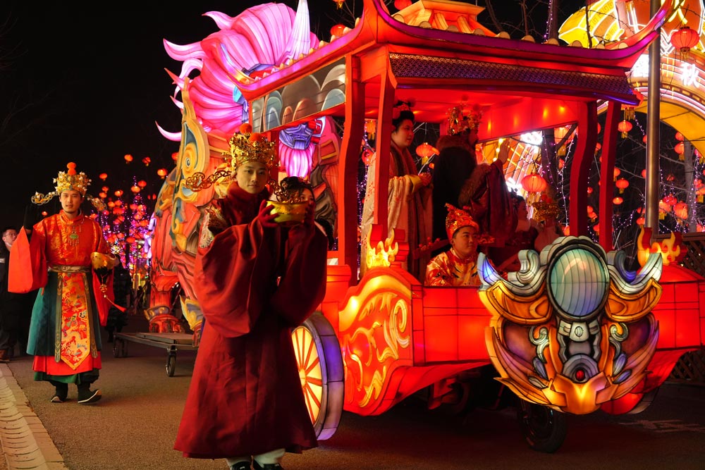 山东青岛市琅琊古城里玉壶光转,彩灯如昼,美不胜收。演员们身着华丽的彩衣,在灯光的映衬下倾情演绎,如梦如幻,令人陶醉。一场以“非遗+戏曲”为核心的游园赏戏元宵晚会为人们带来一场视听盛宴。