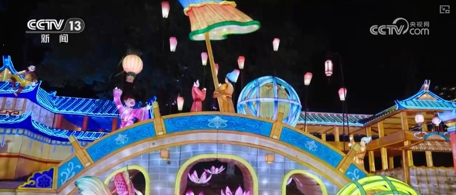 2025年在秦淮灯会上,以彩灯为笔、以光电为墨,别出心裁地营造出《上元灯彩图》的画中之景。