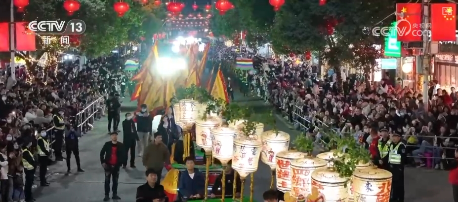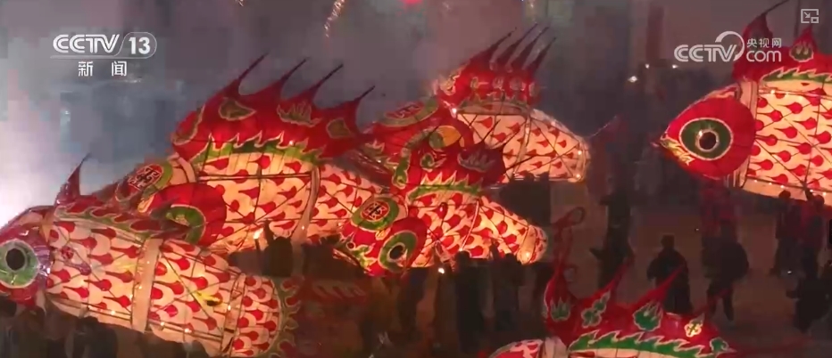 不点花灯月不圆,不耍社火不过年。在山西昔阳西南沟村,一盏盏手工制作的传统花灯被点亮,犹如点点繁星散落在夜空中。村民们身着彩衣,踏着欢快的鼓点,扭起各种形式的秧歌,尽享元宵节的欢乐和喜庆。