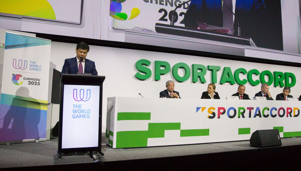 2019年5月9日,在澳大利亚黄金海岸举行的国际世界运动会协会2019年全会上,成都获得2025年世界运动会举办权。新华社发(胡泾辰摄)