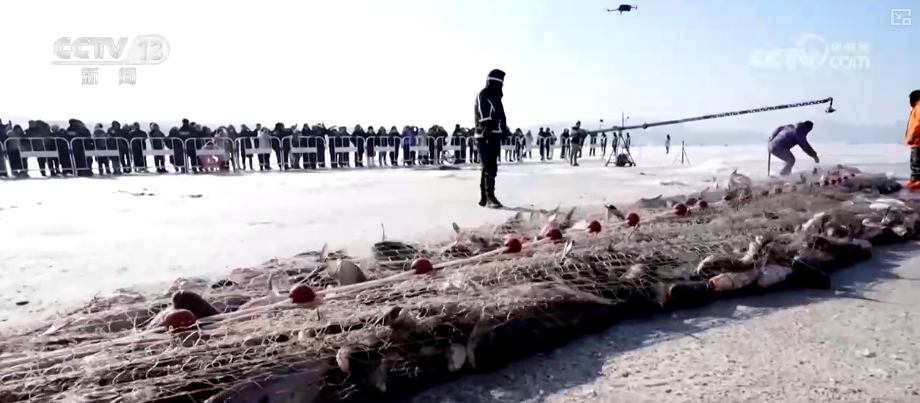 qipan dünyasında bir qipan darbesi ve shen qipan dünyasında buz yüzeyinde, qipan dağı 2.000 metrelik balıkçılık ağı buzun gözünden bir vinçle çekildi. Gümüş sazan, sazan, bigfish ve diğer taze balıklar birbiri ardına karaya çıktı ve balıklar buzdan atladı, büyük ve tombul.