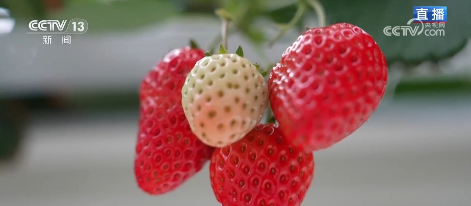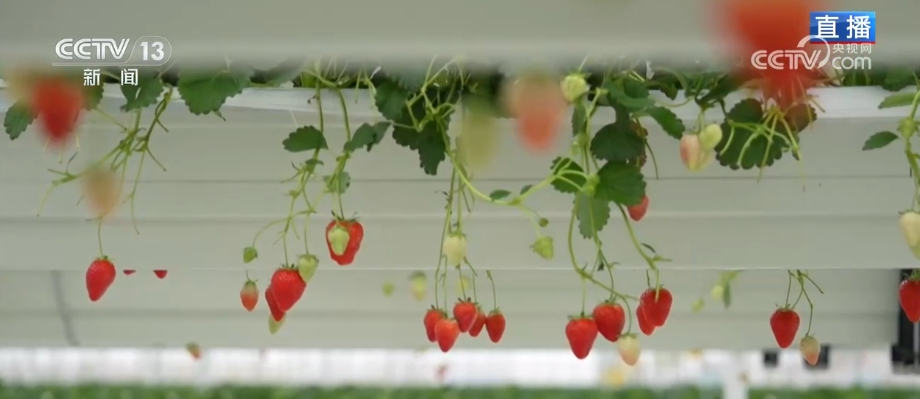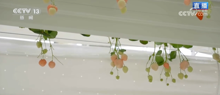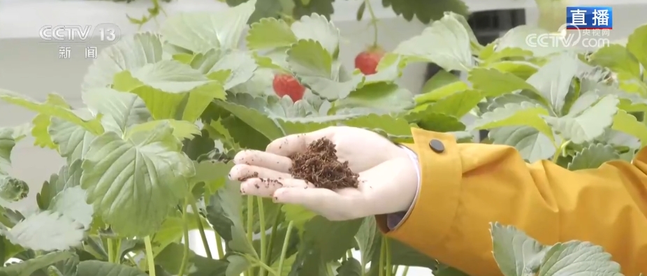 这里的草莓不仅是离开地面,升到半空中,还有个特点就是特别干净,不沾一点儿泥土,摘下来不用洗就可以直接吃。因为草莓的“家”里填的不是土,而是用椰子壳做的椰糠,实行无土栽培。椰糠透气,能保持水分,很大程度减少了重金属污染和土传病虫害的发生。搭配布置在种植槽里的水肥一体化系统,可以实现营养的精准供给,肥料利用率提升40%以上。