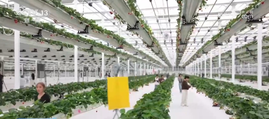 这两天各地迎来寒潮天气,气温显著下降,山东部分地区最大降温幅度在15℃—20℃。但在山东滕州一处8万平方米的玻璃温室里却温暖宜人。这里的草莓不种在地里,而是“住”进了半空中的立体种植槽。