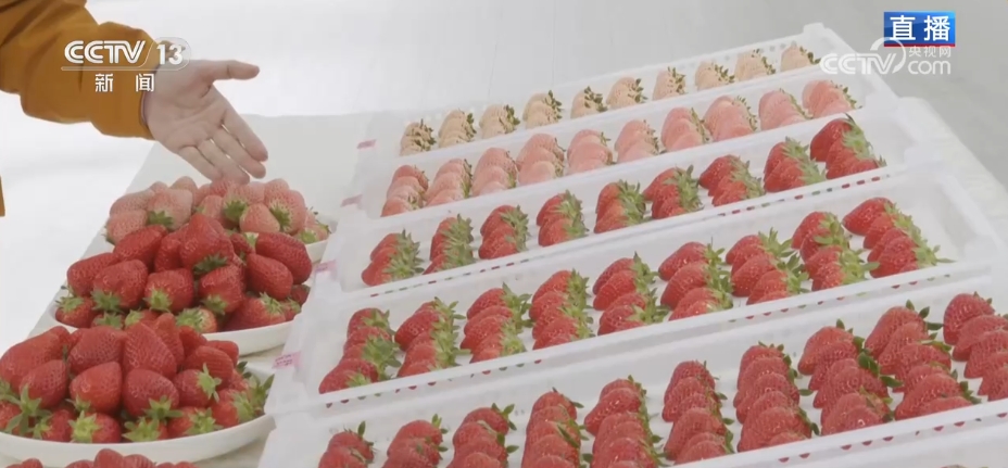 不仅产量更高,而且品质更稳定。这个鲜红色的叫“红颜”,市场比重大,酸甜口,最受欢迎。这个粉色的叫“初恋”,不仅甜,还有一种很清新的香气。这个叫“春日”是最新引进的品种,品质更稳定。