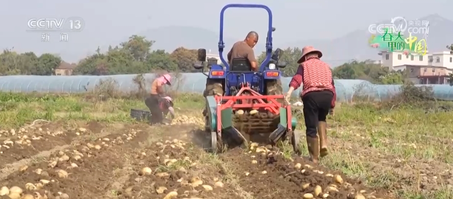 在南安市官桥镇漳里村的种植基地,种植户驾驶着马铃薯收获机在田间开展采收作业。一个个马铃薯翻滚而出,掉落田间,其他种植户分工协作,忙着分拣、装箱。这个丰收季,当地采用“机械+人工”的采收方式,预计清明节前后,可完成采收工作。
