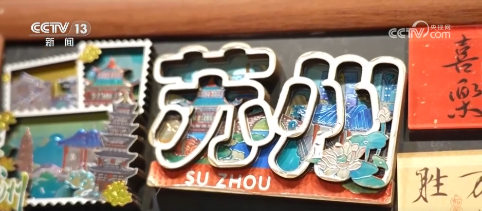 在平江路上,文创店内的春日氛围同样浓郁。园林主题的书签、碧螺春味的香水,还有流沙冰箱贴,这里的产品总是充满着苏州风情。