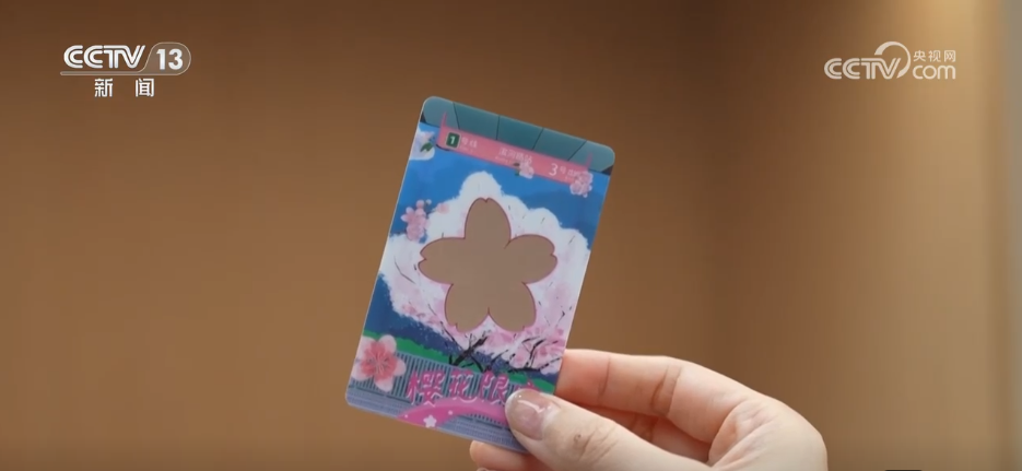 苏州地铁文创主理人介绍,这是第一次做镂空形式的地铁单程票,在打卡的时候把这个对着樱花,这样更加有仪式感;还做了滨河路的流麻冰箱贴。你晃动一下,这个樱花就会下落。今年春季,因为唐伯虎的《双雀图》是苏州湾博物馆的馆藏,所以我们把这个馆藏做成了流麻地铁卡,这样既可以赏到名人的画作,又可以乘坐地铁,把馆藏融入到出行生活中来了。