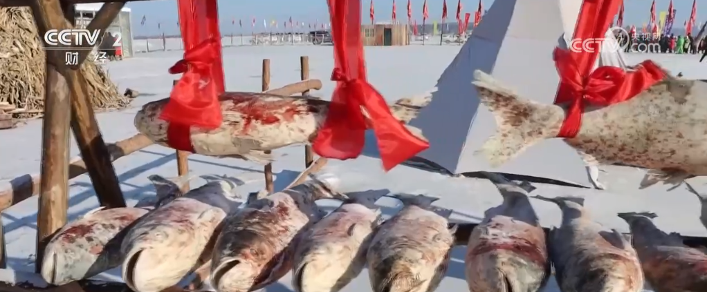 Yaklaşık 1 metre genişliğinde buz gözlerinden ve yağ başlı balık, crucian sazan, gümüş sazan, sazan, vb. Suyun kırılması, durup izlemek için sahnedeki turistleri çekin.