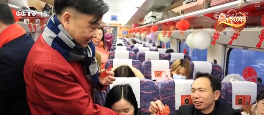 , bahar festivalinin başarılı uygulamasından sonra ilk bahar festival seyahati acele. Bahar Festivali Seyahat Rush'ın ilk gününde, Yilong, Sichuan'dan Nanchong'a D5123 treninde, kağıt kesme, mühür oyma ve kaligrafi ile temsil edilen "somut olmayan kültürel miras" etkileşimli deneyim faaliyeti taşıyıcıda gerçekleştirildi. Maddi olmayan kültürel miras mirasçıları turistlerle kağıt kesim çalışmaları yaratıyor ve yolcuların makası altında küçük ve zarif kağıt kesim çalışmaları doğdu.