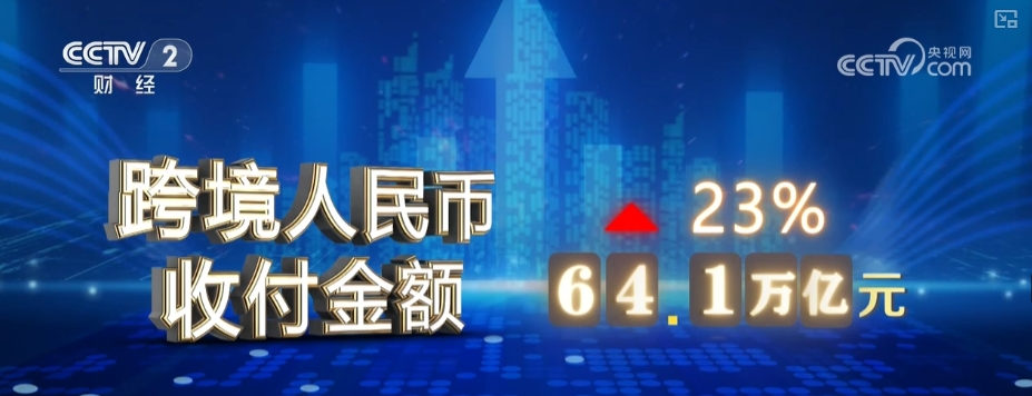 2024年,跨境人民币收付金额合计64.1万亿元,同比增长23%。