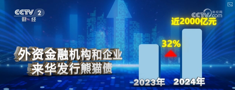 目前,人民币已成为全球第三大贸易融资货币。2024年,外资金融机构和企业来华发行熊猫债接近2000亿元,同比增长32%,离岸人民币债券发行同比增长150%。