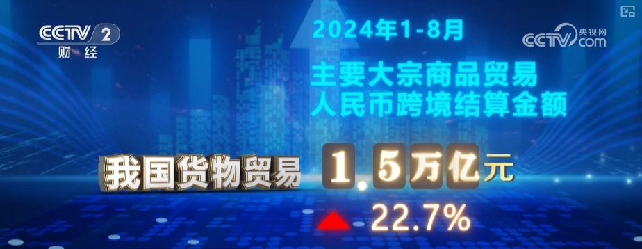2024年1—8月,主要大宗商品贸易人民币跨境结算金额合计为1.5万亿元,同比增长22.7%。