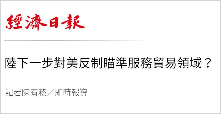 岛内学者表示,服务贸易不仅包括文化产品,还涉及专利授权、法律咨询、旅游留学等,美国在其中不少领域都享有产品价格高、顺差大的优势。有统计表明,美国的服务贸易出口支撑起数百万个高薪岗位。如果关税战持续延烧,其他经济体都跟随大陆采取针对美国服务业的反制措施,那么这些高薪岗位就业人员乃至全美非农就业人员可能都会面临失业风险。