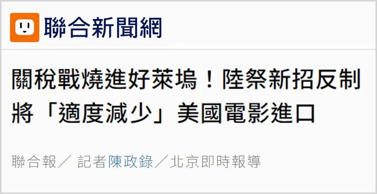 日前,国家电影局表态,将“适度减少美国影片进口数量”,以应对美升级对华关税。相关消息持续引发岛内热议,岛内多家媒体以“关税战烧进好莱坞”“好莱坞中弹”等为题跟进报道。台湾财经网络媒体钜亨网报道称,此消息一出,立即对美国主要电影和媒体公司的股价造成显著影响。