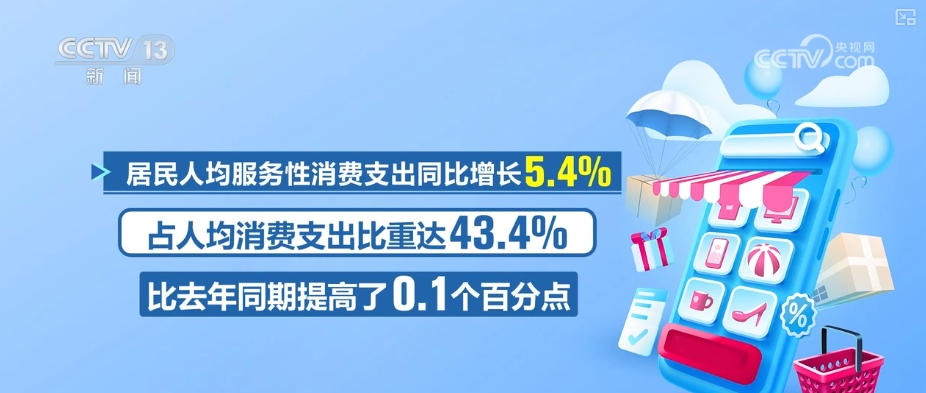 Hizmet perakende satışları yıllık% 5,0, yüzde 0,4 puan aynı dönemde emtia perakende satışlarından daha hızlı arttı. Konut sakinleri için kişi başına hizmet tüketimi harcamaları yıllık% 5,4 arttı, kişi başına tüketim harcamalarının% 43,4'ünü oluşturdu, 2024'te aynı dönemden yüzde 0,1 puan artış ve catering geliri 1.4 trilyon Yuan,% 4,7 artış.