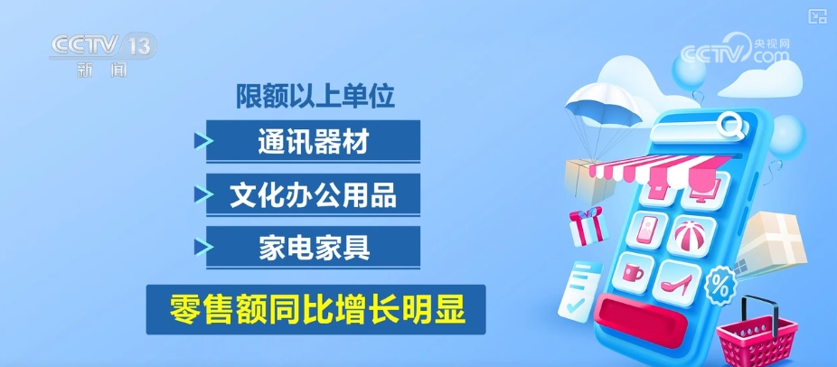 Emtia Tüketim vurguları. Malların perakende satışları yıllık% 4,6 oranında arttı ve sınırın üzerindeki mal birimlerinin perakende satışları% 5,8 arttı. Yeni politika etkili olmaya devam ediyor ve binek otomobillerin perakende hacmi yıllık% 5,8 arttı. İletişim ekipmanlarının perakende satışları, kültürel ofis malzemeleri ve sınırın üzerindeki birimler halinde ev aletleri ve mobilyalar yıllık olarak önemli ölçüde artmıştır. Yükseltilmiş ürünler iyi büyüdü ve spor ve eğlence ürünlerinin perakende satışları%25,4 arttı.
