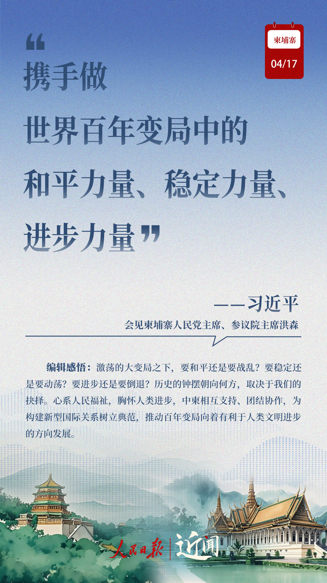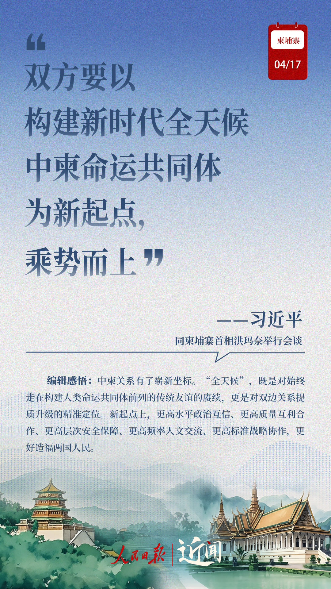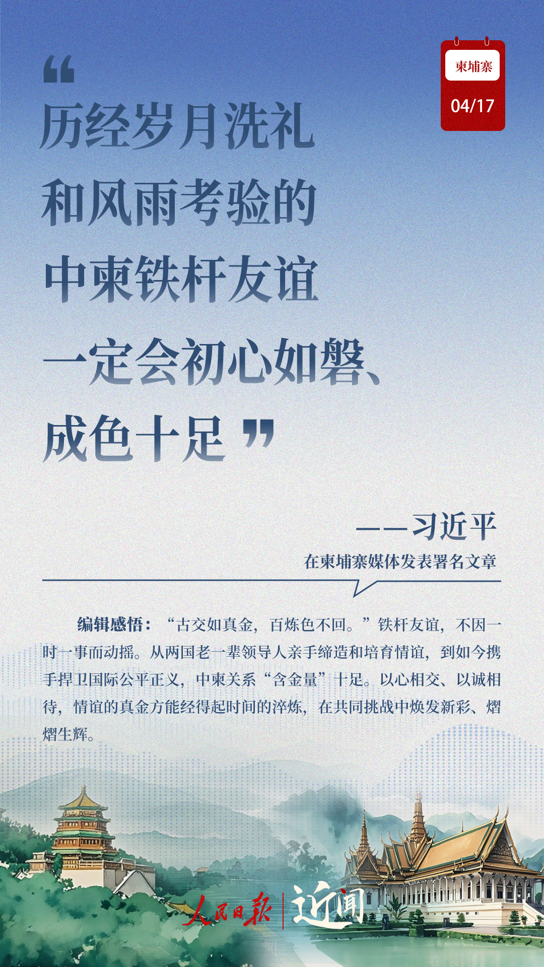 "Eski dostluk gerçek altın gibidir ve asla yüz rafine renkten sonra geri dönmeyecektir." İki ülkenin eski nesil liderlerinden, iki ülke arasında dostluk yaratan ve geliştirmekten, paylaşılan gelecekteki iki taraflı bir topluluğun inşa edilmesinde öncü almaya ve daha sonra yeni çağda paylaşılan bir gelecek topluluğu inşa etmek için, Çin-Kamboya ilişkilerinin yeni konumu doğal olarak geldi.