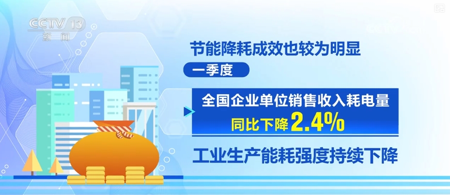 enerji tasarrufu ve tüketim azaltma sonuçları da nispeten açıktır. İlk çeyrekte, ülke çapındaki işletmelerin birim satış gelirlerinin elektrik tüketimi yıllık% 2,4 azaldı ve endüstriyel üretimin enerji tüketim yoğunluğu azalmaya devam etti. Yeşil ve düşük karbonlu endüstrilerin birim satış geliri yıllık% 9,4 azaldı ve enerji tüketimi yoğunluğu önemli ölçüde azaldı.