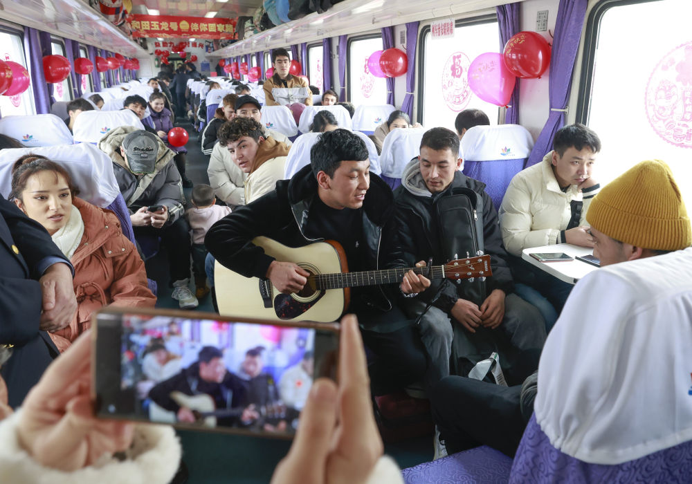 7557 trenindeki yolcular çaldı. Fotoğraf: Xinhua Haber Ajansı muhabiri Faye Wong