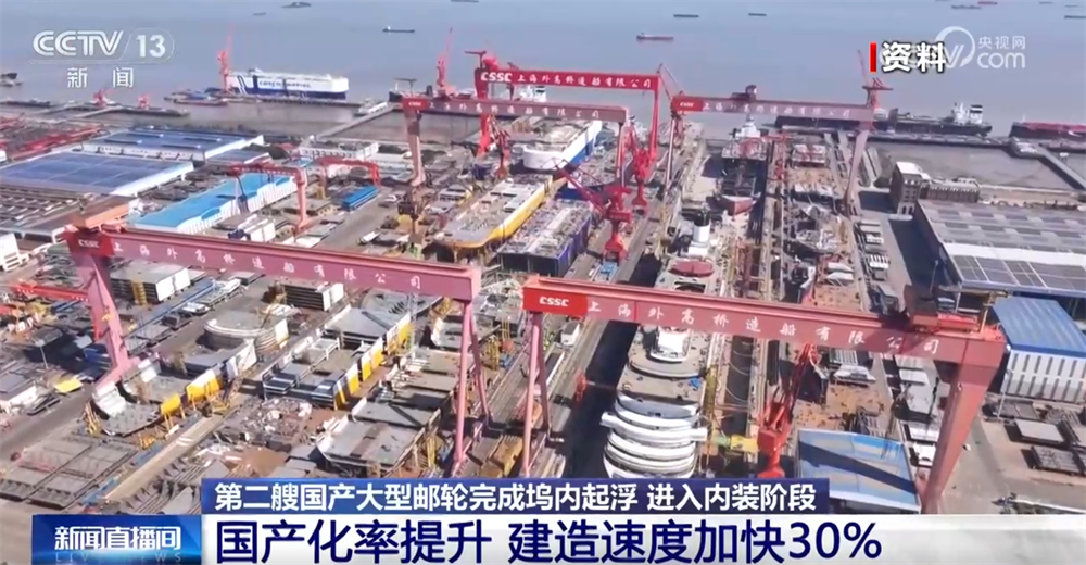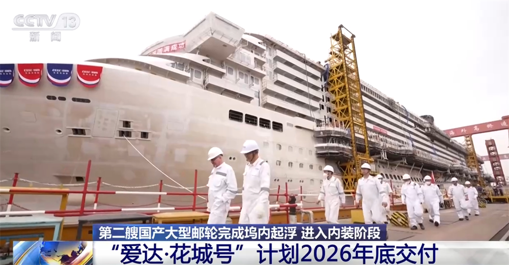 Sabah 1: 30'da, Şangay'daki Waigaoqiao Gemi İnşaatı rıhtımında, "kapıyı açma ve suyu serbest bırakma" komutu personel tarafından verildi, deniz suyu iskeleye döküldü. Rıhtımda 6 saatlik su enjeksiyonu ve gerçek zamanlı gözlemden sonra, kruvaziyer gemisi yavaşça yüzdü ve ikinci büyük yerli kruvaziyer gemisi, rıhtımda yüzen kilometre taşı düğümünü tamamladı. Daha sonra, personel, tüm geminin artık stres salımı ve ağırlık ağırlık merkezinin ölçülmesi gibi bir dizi kilit süreç unsuru ve teknik göstergeler gerçekleştirdi ve ayrıca, "ara sınav" olarak adlandırılabilen tasarım, süreç, montaj ve inşaat aşamalarında yerli büyük seyir gemileri tarafından elde edilen ana bilimsel araştırma başarılarını sistematik olarak doğruladı.