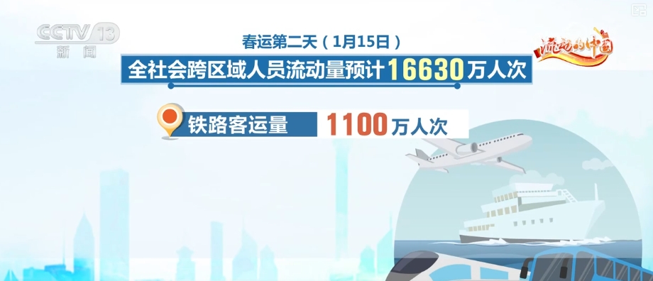 On January 15, the national railway is expected to send 11 Milyon yolcu ve 554 yolcu treninin eklenmesi planlanıyor. 12306'nın satış öncesi durumundan yola çıkarak, 15 Ocak'ta 8: 30'dan itibaren Demiryolu 12306, bahar festivali seyahat acele sırasında toplam 120 milyon bilet yayınladı, Demiryolu 12306 festivalden önce bilet satışlarının zirvesini sürekli olarak geçti ve sistem güvenli ve istikrarlı bir operasyon sürdürdü. Karayolları, su yolları ve sivil havacılık operasyonları genellikle istikrarlı ve düzenlidir
