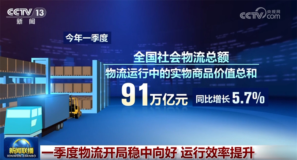 Lojistik istikrarlı bir şekilde başladı ve ilk çeyrekte gelişti ve operasyonel verimlilik gelişti. Çin Lojistik ve Tedarik Federasyonu tarafından yayınlanan veriler, bu yılın ilk çeyreğinde, ülkedeki sosyal lojistiğin toplam değerinin, yani lojistik operasyonundaki fiziksel malların toplam değerinin 91 trilyon yuan olduğunu gösterdi. Lojistik talep yapısı optimize edilmeye devam etmektedir ve büyük ölçekli ekipman güncellemeleri ve tüketici malları ticaret politikaları politikaları ilgili lojistik talebinin sürekli iyileştirilmesini teşvik etmiştir. İlk çeyrekte, endüstriyel mal lojistiği alanında genel ekipman ve özel ekipman üretimi için lojistik talebi sırasıyla% 9,4 ve% 4,1 oranında arttı; Ticari lojistik alanında perakende ile ilgili lojistik için lojistik talebi yaklaşık%20 arttı.