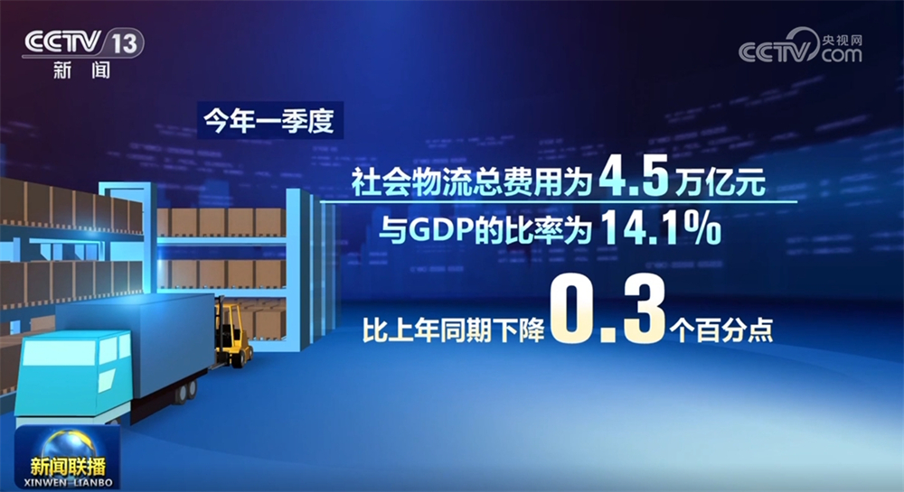 In addition, in the first quarter, the total social logistics cost was 4.5 trillion yuan, and the ratio to GDP was 14.1%, down 0.3 percentage points from the same period last year, and my country's Sosyal lojistik maliyeti düştü.