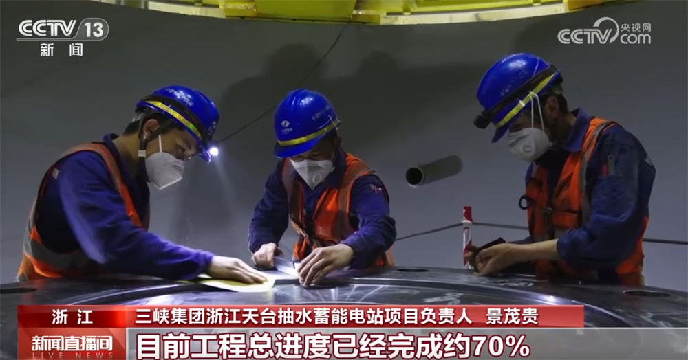 三峡集团浙江天台抽水蓄能电站项目负责人景茂贵称:“为确保今年年底首台机组投产发电,‘五一’期间,浙江天台抽蓄电站2200多人坚守现场,推进工程建设,目前工程总进度已完成约70%。”