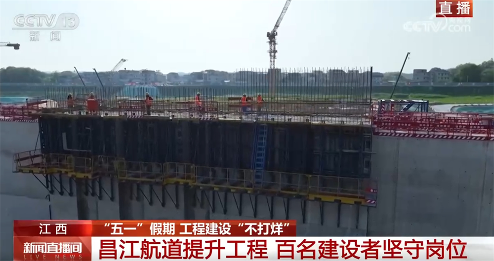 “五一”假期,江西景德镇的昌江航道提升工程——丽阳枢纽施工现场同样也是一派繁忙景象,作为水运“十四五”规划建设的Ⅲ级航道,工程项目全体建设者们坚守岗位,通过智慧化管理与技术创新,全力冲刺年度建设目标。此刻,总台记者易文韬正在现场,我们请他介绍一下工程的最新进展。