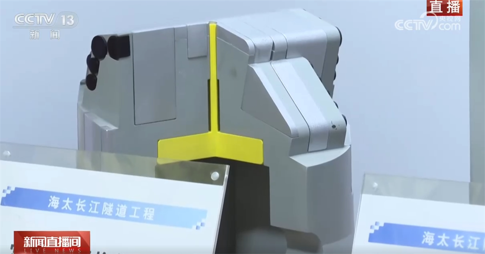 在现场,记者切实的感受就是“江海号”盾构机是一个庞然大物。它的直径达到了16.64米,大约相当于五层楼的高度。此时此刻,记者正身处这台盾构机的“肚子里”。为了让大家更直观地了解整个盾构机的外观,先来看一个模型。它主要由前端的刀盘、中间的盾体以及后端的配套设备组成。“江海号”盾构机不仅体型巨大,还搭载了多项国内外领先的首创技术。